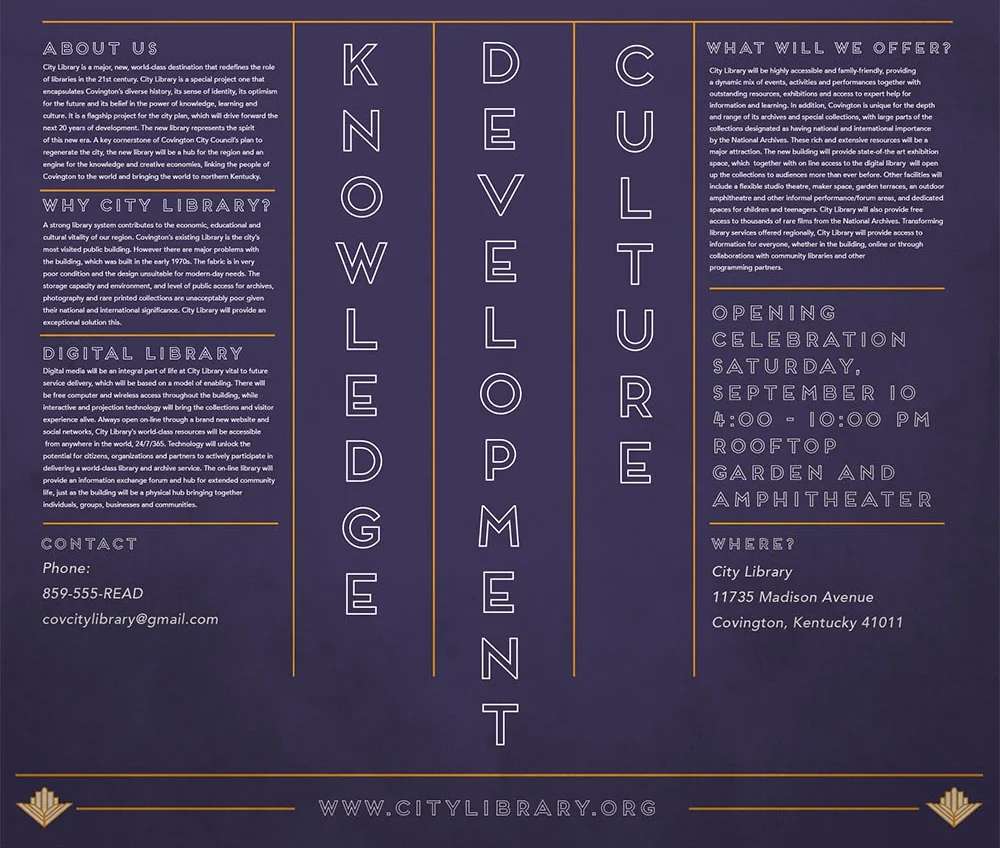 Heavily influenced by the art deco movement, I found myself designing this in hopes of a nostalgic revamp of the current Covington Library. Due to Covington’s current under-funded look, I wanted the poster to take on the reality that is Covington and its current state. I found inspiration in the lack of modernization. Another direction I took for format, was actually library punch cards. The gridded system resembles library cards.