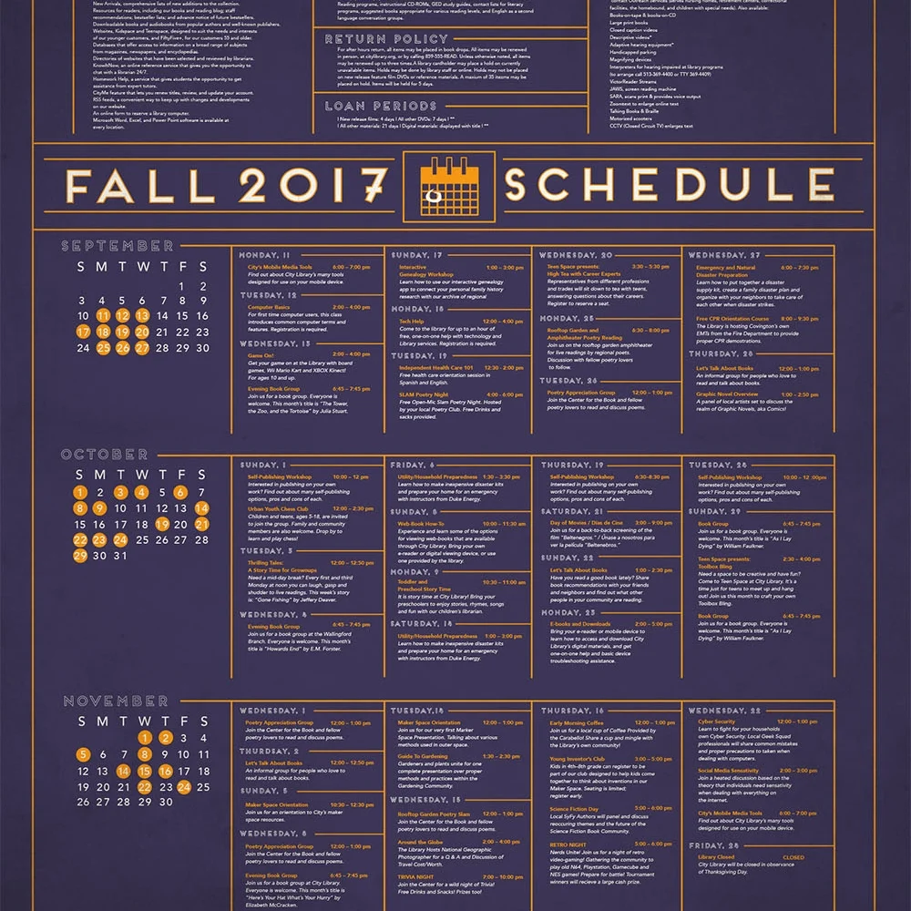 The backside is a design that I am very proud of. Mostly, because it took hard work and tireless efforts to reach. I found inspiration through calendars and newspaper layout. I wanted to keep a consistent retro theme amongst the full poster. Therefore, I kept the corners similar to the front side by adding in the art deco head graphic and the pencils.