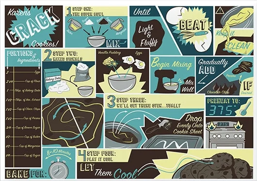 For this project I wanted to express my vector skills in full force. I have always grown up liking comic books and enjoyed their style. I took a heavy comic book influence for this project and brought my mother’s cookie recipe to life. Karen’s Crack Cookies, would bridge two of my favorite childhood memories together and help fuel my ambition to tackle this huge 24” X 18” project. I spent countless hours mocking up many vector-illustrations and had a blast doing it.